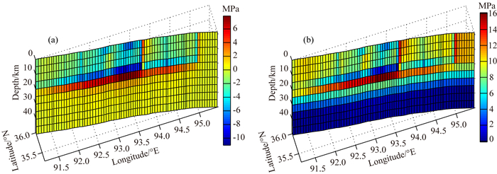 (a) 同震库仑应力变化;(b)同震库仑应力变化与震间累积应力之和