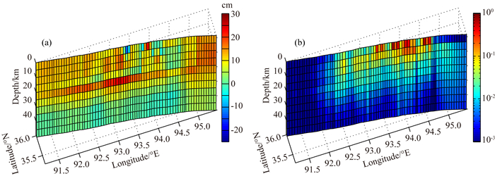 震后余滑分布(a)和分辨率(b)